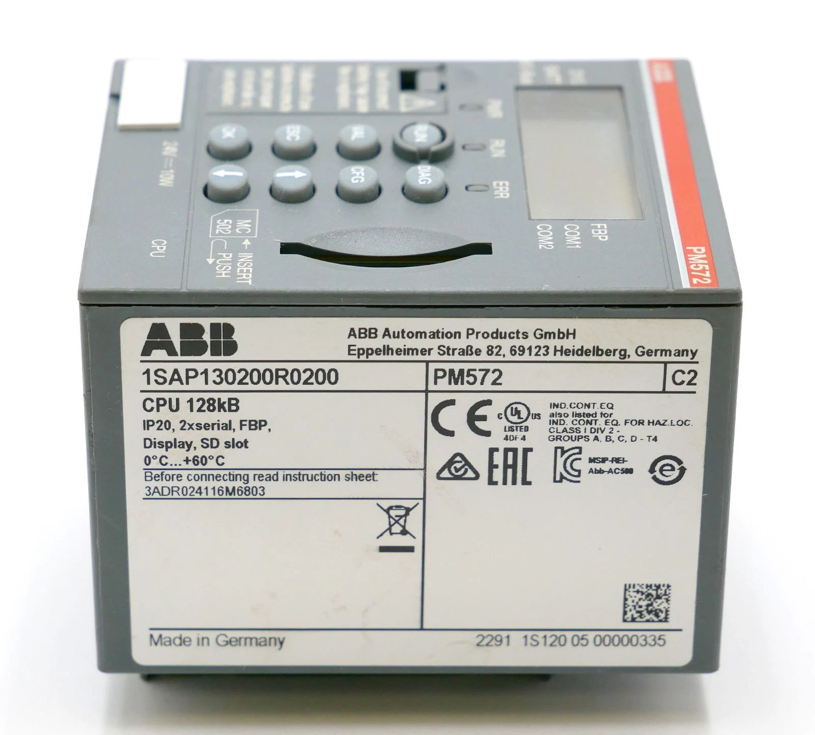 PM572:AC500,PROG.LOGIC CONTROLLER 128KB, 24VDC,2XRS232/485,F