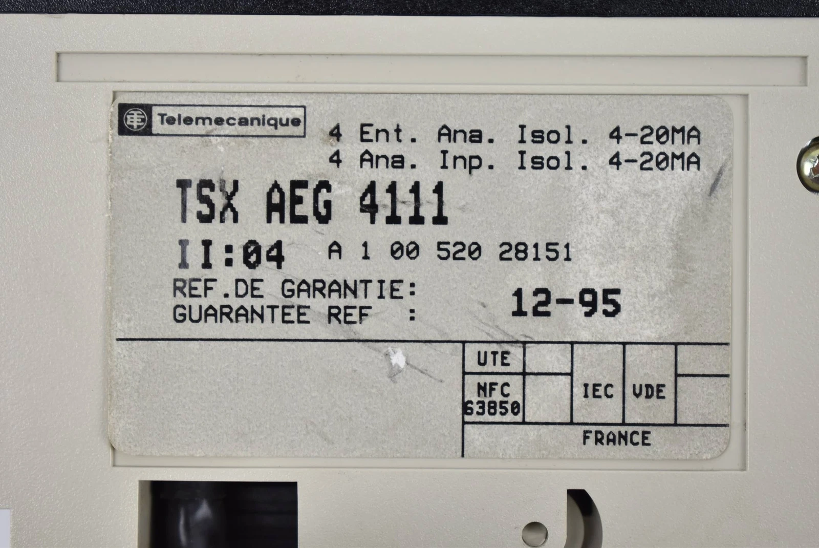 TELEMECANIQUE TSX-AEG-4111 INPUT MODULE ANALOG 4POINT 4-20MA