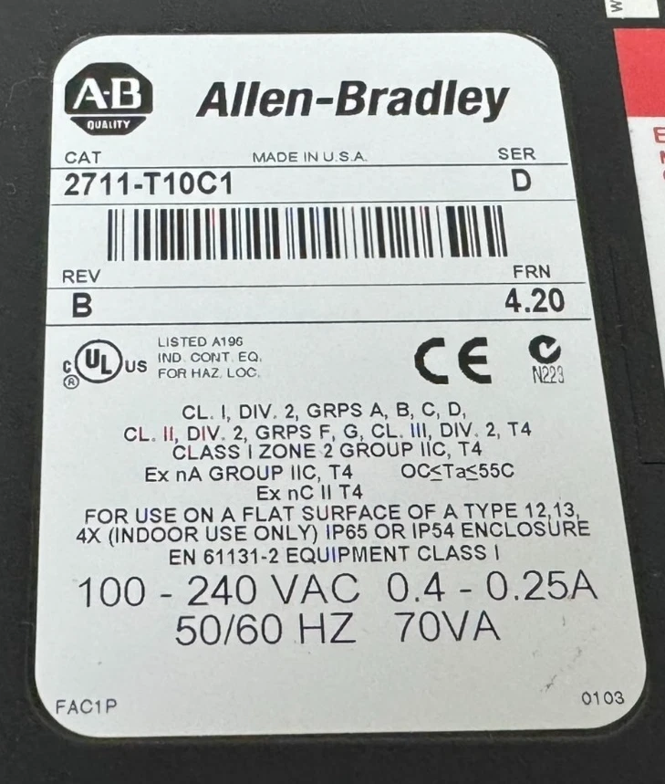 PANELVIEW 1000 COLOR TFT ACTIVE MATRIX TERMINAL 10.4-INCH, T